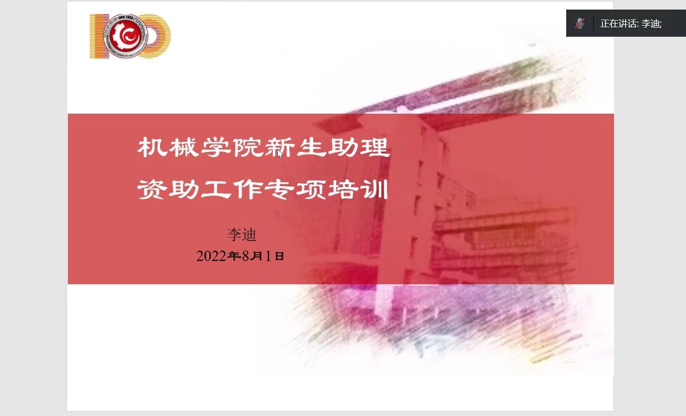 于腾讯会议开展了新生助理培训。本次培训由新生助理总负责杨少晨同学主持,并由李迪老师就高校新闻宣传及资助工作两个方面开展培训。机械院王玉迪老师及全部新生助理共同参加了此次会议。