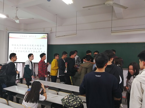 2019年4月16日12:40,澳门银河娱乐城官网 第二十七届学生代表大会第二任代表委员会选举大会在综合楼212隆重举行。澳门银河娱乐城官网 48位学生代表出席了此次选举大会,湖南大学校学生会学生事务办公室干事李泽睿等出席此次选举大会并监督大会的选举过程。此次选举大会由澳门银河娱乐城官网 学生会主席高传昊主持。