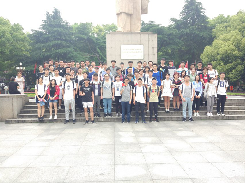 到了毛泽东雕像下集合后,大家有序排好队伍。值得一提的是我们在东方红广场遇到了同样在进行团日活动的机械3班的同学,两个班的同学进行了友好的问候与交流。然后我们在团支书的带领下齐唱国歌,抒发心中的爱国情。紧接着学习委员围绕在新时代继承和弘扬五四精神、争做担当民族复兴大任的时代新人等内容,为大家演讲,同时宣传委员拍照记录。最后,团支书带领团员重温入团誓词。