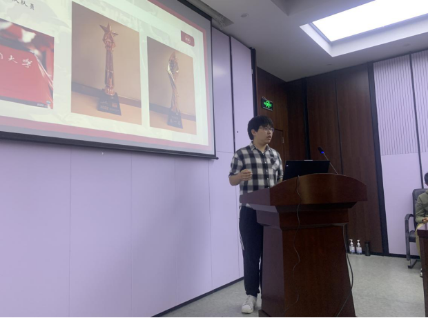 班会伊始,班长叶林星喆向丁院士及各位领导介绍了同学们的学习情况、科研进展、获奖荣誉和未来规划。接着我班四位优秀代表邢志涛同学、杨少晨同学、赵鑫杰同学和钱明超同学分别讲述了他们在竞赛、志愿服务、班助工作和车队的经历和感触。其中,钱明超同学分享了他作为机械院车队技术组组长参与2022年中国大学生方程式汽车大赛的故事,收获了丁院士的宝贵建议。