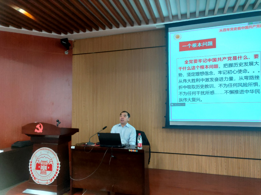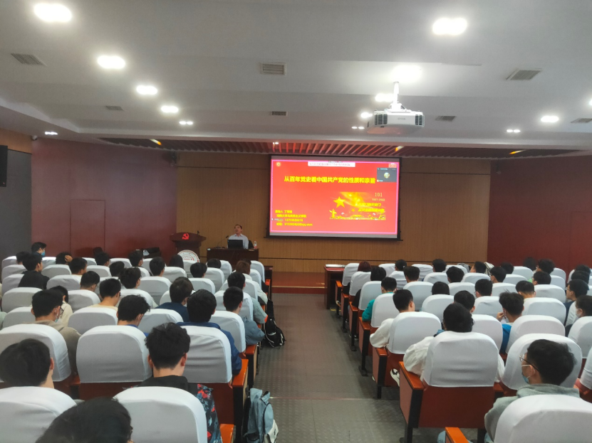 2022年11月6日上午,澳门银河娱乐城官网 第73期入党积极分子第三次集中培训课程在机械院401顺利举行。湖南大学马克思主义澳门银河 丁军强教授为同学们带来题为“从百年党史看中国共产党的性质和宗旨”的精彩党课。