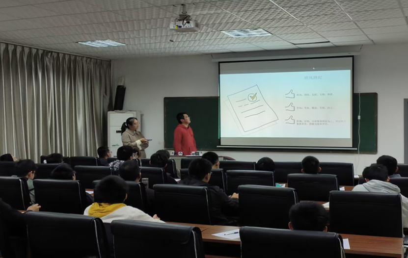 11月18日下午,机械2210班“筑梦青春,携手共进、拥抱理想”主题班会于机械院楼211室顺利召开。班会以不忘韶华之青春目标为核心,围绕班级建设现状与未来目标与寄语展开,既是对已走过大半的大一第一学期的班级建设一次有力的总结,又在此基础上提出了新的班风建设方案与目标,有效地加强了未来班级建设的秩序性和有效性,是十班学子们对学习与班级建设的一次思维碰撞和有效探索。本次班会由张峻霆和冯天娇同学主持,各班委干部积极组织,各同学积极配合,并特邀班主任李茂军老师,刘培学长与尚锦松学长与会,班集体团结一致,共同促成了这次班会的圆满成功。