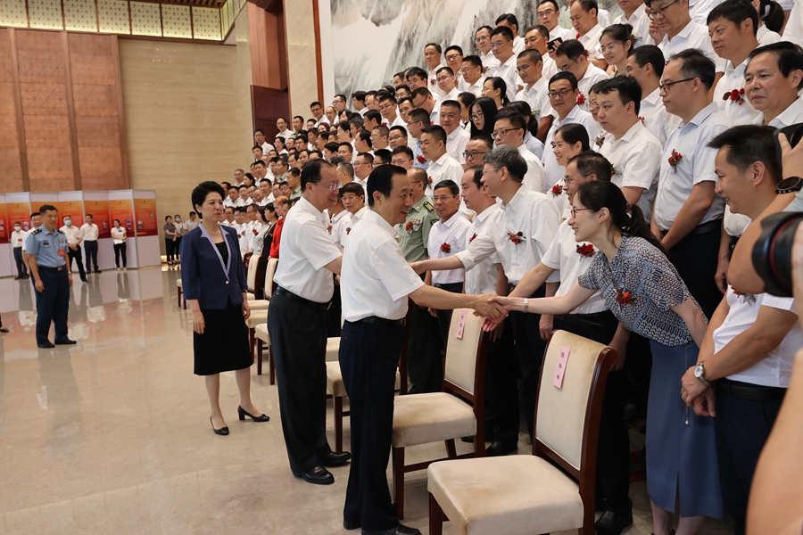 湖南省委书记、省人大常委会主任许达哲出席大会并为获奖代表颁奖,省委副书记、省长毛伟明讲话。会前,许达哲、毛伟明等省领导会见了获奖代表。省委副书记乌兰主持会议。中国工程院院士、2020年度湖南省杰出贡献奖获得者、湖南大学罗安教授等作为获奖代表发言。