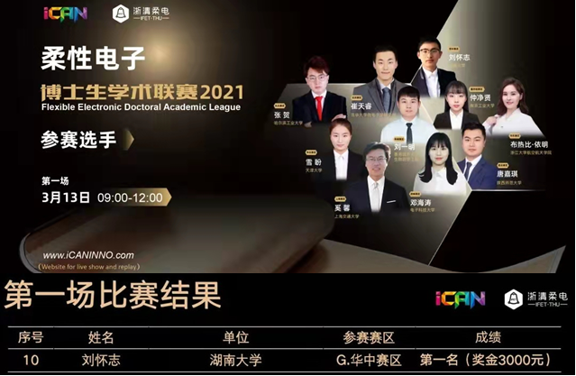 11月12日,由浙江清华柔性电子技术研究院联合艾瞰(iCAN International Contest of innovAtioN)举办的“2021年全国柔性电子博士生学术联赛总决赛”圆满落下帷幕,来自清华大学、北京大学、中科院等高校和科研院所的100名博士研究生参加了比赛。经过十大赛区的层层选拔,我院2018级博士研究生刘怀志成功入围华中科技大学黄永安老师领衔的华中赛区,并凭借其研究课题“柔性智慧微金属网格”在开赛阶段以优异表现荣获“单场冠军”,同时在总决赛舞台上凭借精彩发挥荣获“年度优秀奖”。该赛事由湖南大学段辉高、张冠华、陈逢军等老师指导,受到了澳门银河娱乐城官网