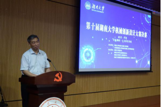 在主持人简单开场后,大赛决赛正式拉开序幕。湖南大学双创中心肖靖处长上台致辞。他指出,创新设计活动是一个让同学们锻炼自身本领、发挥知识特色的优秀平台,希望各位参赛的同学能够在比赛中听取各位教授的建议,改正不足、吸取经验,并祝愿本次大赛能够圆满成功。