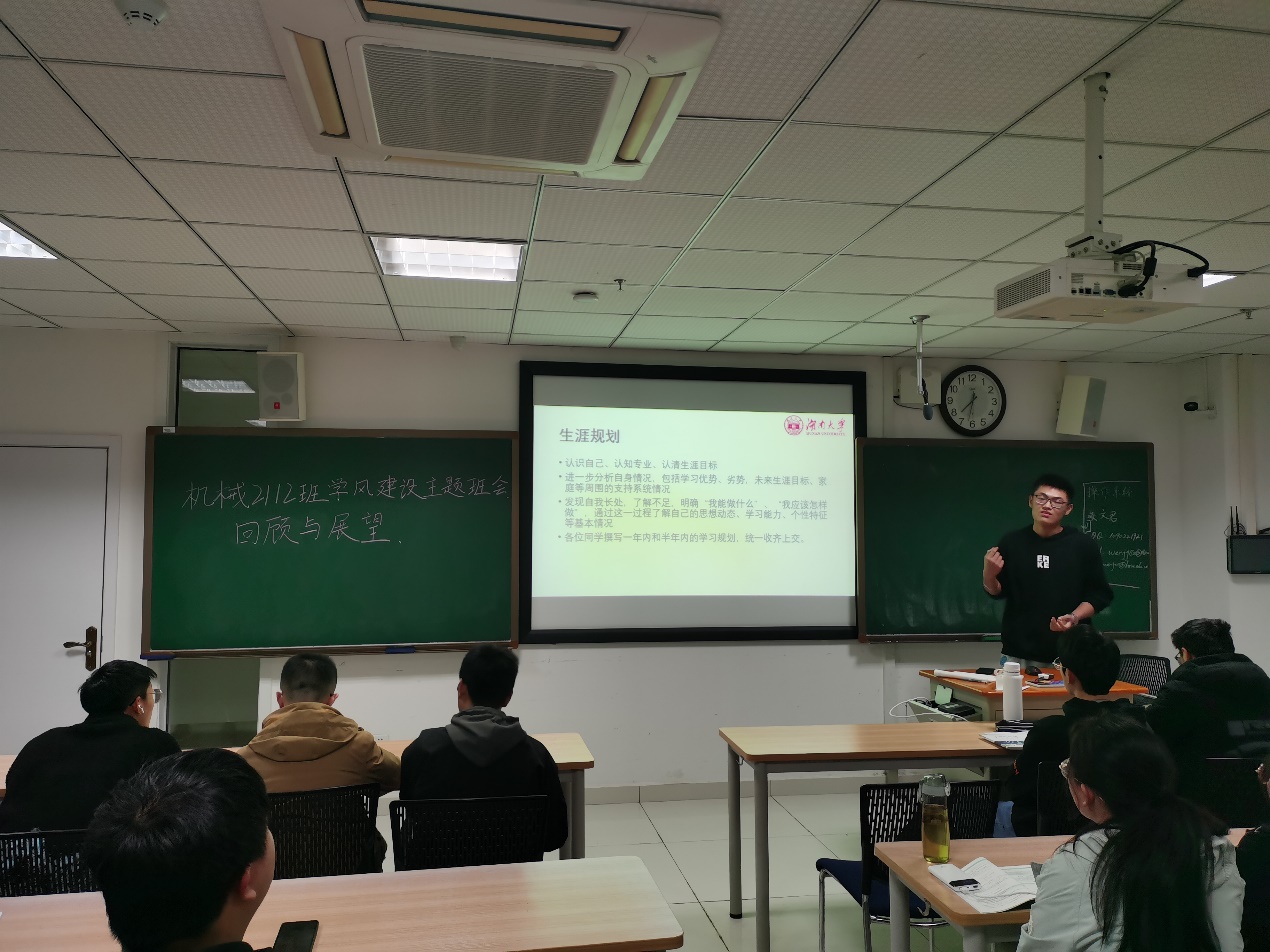 规划未来更是能够激励自我的有效方法。最后,王新宇同学请机械2112班全体同学各对自己的未来半年、一年做好规划,不仅要有清晰的自我认知,还要有对专业的理解及未来专业的选择,也要有自己的学习计划。