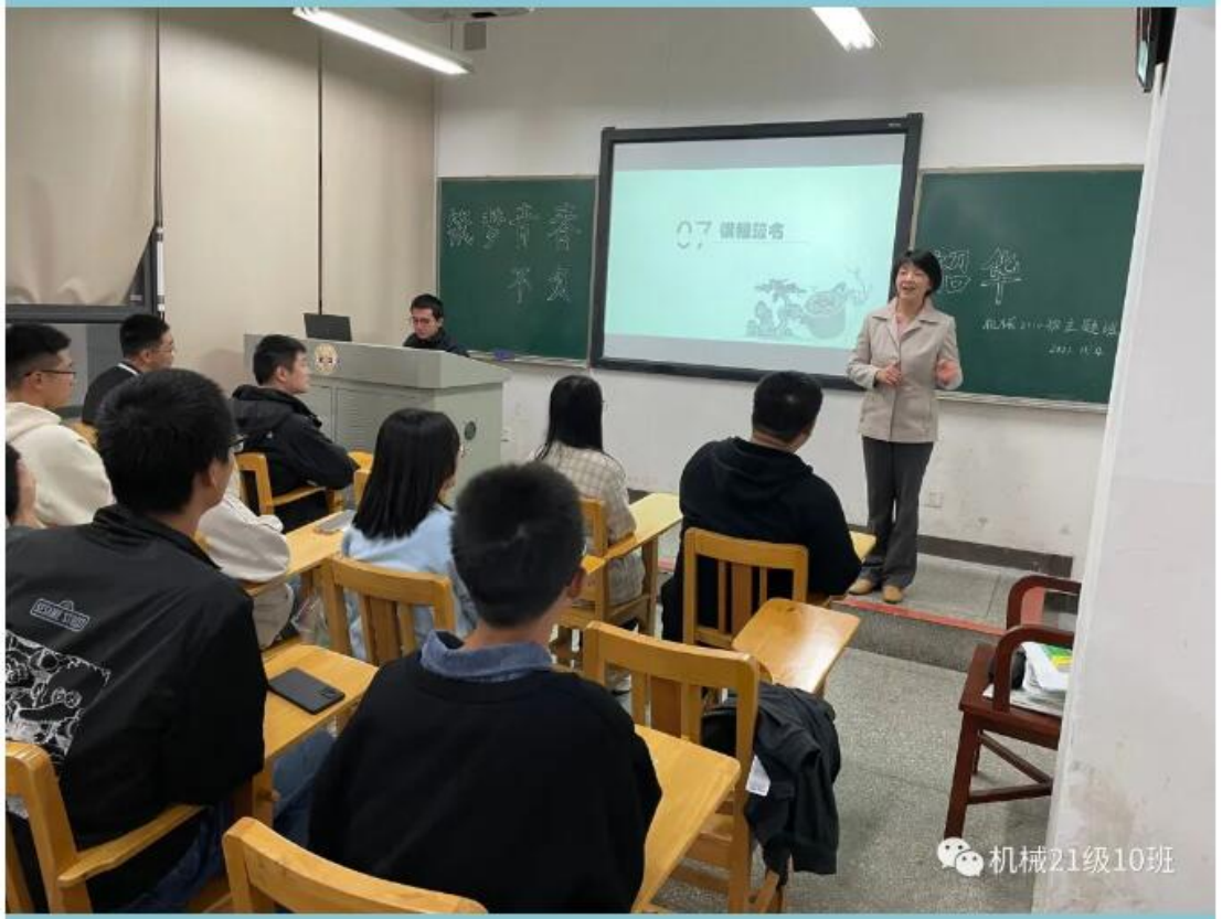 党委书记彭晓燕老师、机械2110班主任张坦探老师、辅导员方婷老师共同参加班会。