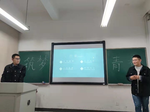 首先,班长为同学们阐述了青春与梦想的定义以及它们对人生的意义,并以询问大家是否还记得自己初心的方式来倡导大家要有梦且敢想。随后,活动委员王智豪为大家播放了一段长达十四分钟的逐梦励志微电影。视频讲述了一个男孩在逐梦星空的路上遇到的坎坷和挫折,现实虽然残酷,但因为有梦想的支撑而开出花朵。同学们认真观看了视频,张子敬、黎君文、王智豪同学分享了自己的感受以及对于梦想与现实的理解。