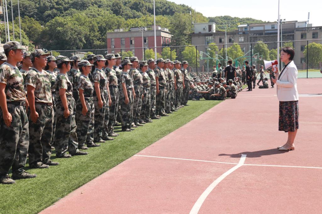 不久,哨声响起。军训场上队列整齐、号声嘹亮,同学们热情高涨地重新投入紧张的军训之中。