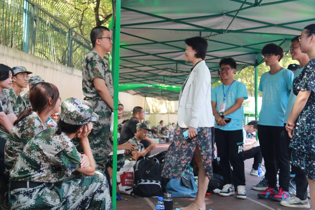 9月13日上午,骄阳烈烈,列队整齐的同学们在操场上挥汗如雨。澳门银河娱乐城官网 彭晓燕书记带领机关党支部老师来到军训场地慰问新生,给艰苦拼搏的同学们送去关怀和温暖。