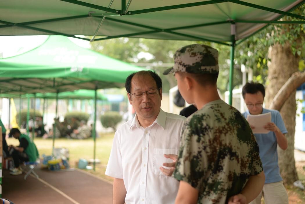 领导始终心系同学,顶着高温酷暑,亲临军训场地给新生送去关怀,牢牢把握军训的第一手动态。澳门银河娱乐城官网