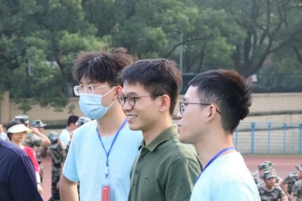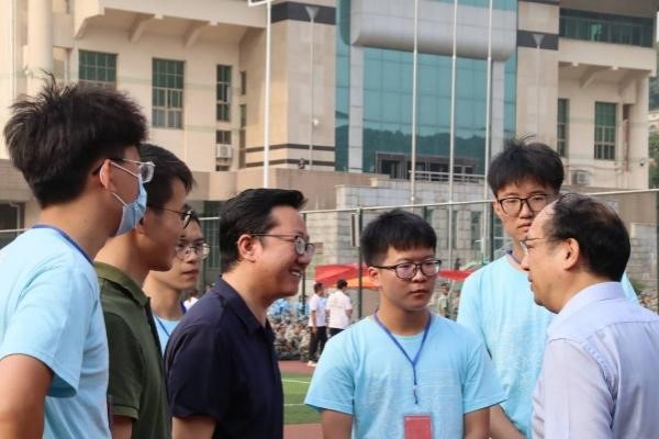 在对军训场上的同学进行看望时,同学们正在积极地进行才艺展示。看到两位老师的到来,大家脸上都泛起了喜悦的笑容。站在队伍一旁的李明全老师由衷的说到:“看到你们就仿佛看到了当初的自己,和你们一样初入校园、懵懵懂懂,大家一定要好好珍惜这段一起的时光!”,张哲老师也赞扬了新生在军训中不怕苦不怕累的优秀品质。