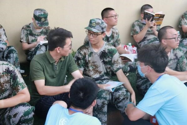 最后,澳门银河 党委书记易洪波老师在训练场一旁与两位班主任老师进行了交流。他表示,希望班主任提醒新生助理,面对新生的一切工作一定要以引导鼓励为基础展开。