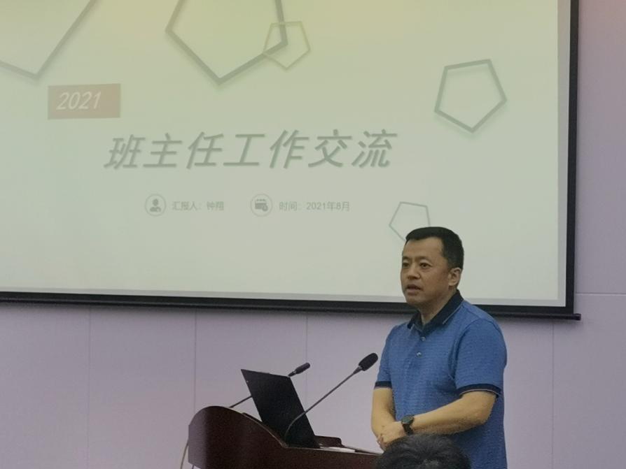 随后,会议进入经验分享环节,两位优秀班主任跟大家进行了学生工作上的交流。钟翔老师从果断、睿智、用心、赋能四个方面展开,他强调要在大一就让新生们了解自我、定好目标,大二则要找好感兴趣的职业和专业,大三根据外在需求从自身知识和自身技能来提升自己的能力,最后大四实现学生到研究者或职业者的转变。老师在整个学生发展的过程中也应该花时间花精力,持续关注新生、鼓励新生,并给予适当的指导。丁飞老师则向大家分享了本科班主任的几点建议和个人的收获与感悟。他用时间轴的方式,将大一开始的90天划分成了迎新、军训、兴趣、学习、考试五大阶段根据不同阶段学生的状态和特点给出了针对性的建议,他认为,抓好开学90天,班级学风建设就已经成功了一半。两位班主任有着不同的学生教育经历,但相同的是,好的班级管理不仅成就了学生,也成就了班主任自己。细心、用心、耐心、爱心、热心,是他们在大学班主任的历程中学到的东西。