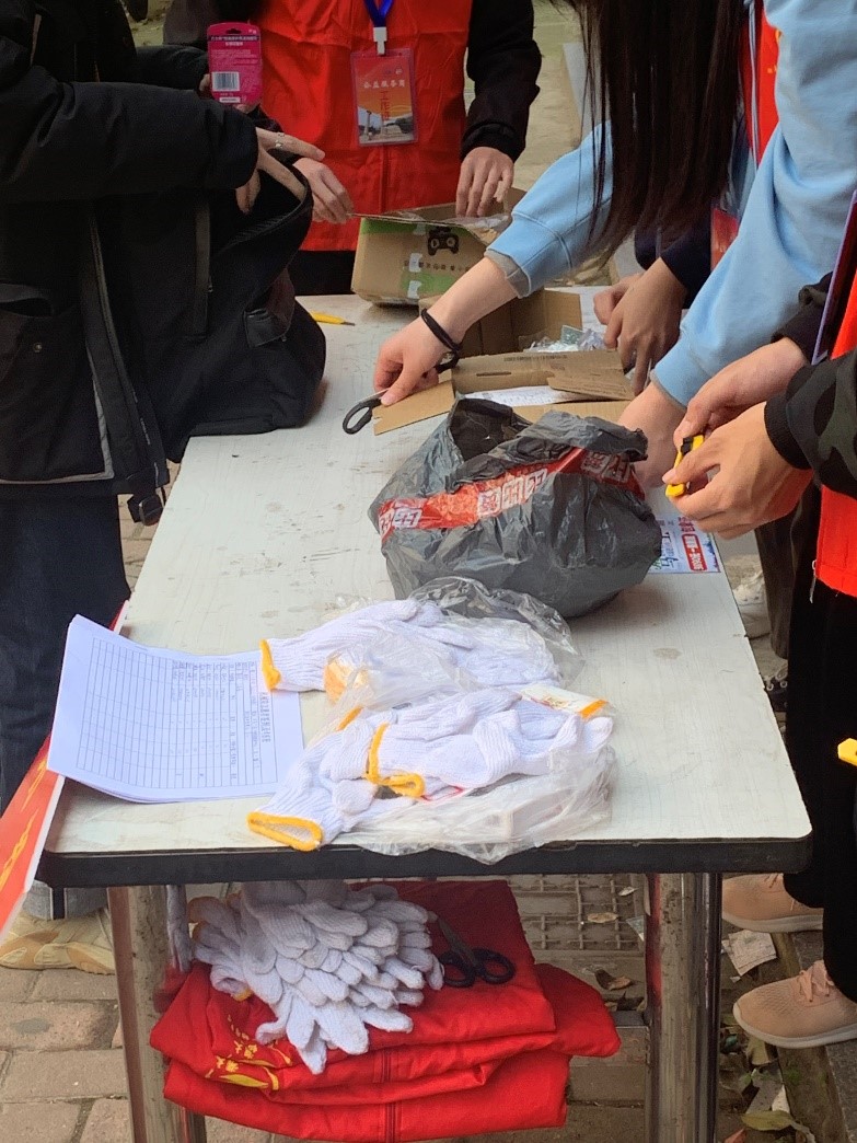 活动进行期间,志愿者们分工明确,有的负责向路过同学讲解活动宗旨,弘扬环保意识;有的呼吁大家回收快递纸盒为环保出一份力;有的小心翼翼地拆快递并将纸盒整整齐齐摆放好方便回收。