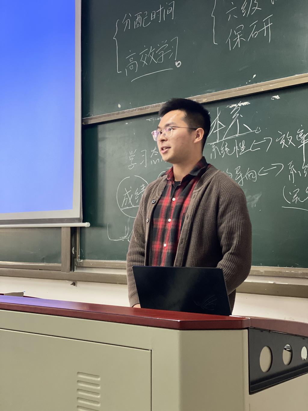 祝晓龙学长引用最近两会习近平总书记的话,从宏观的角度告诉我们要在本科阶段打好基础打牢基础思维层次不能只限于目前课程学习上,而是要将视野放长远,面向国家、社会的重大需求。同时,他通过自己本科时的例子跟我们说明了做好计划的重要性,要把每一件事都做深做透,切忌广而不精,泛而不深。最后,他送给我们一句祝愿:“脚踏实地,仰望星空。”