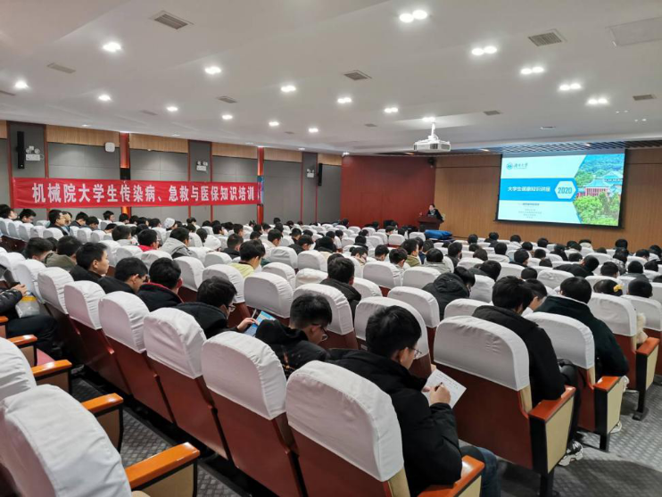 组织学生在机械院院楼401室聆听大学生健康知识讲座。本次讲座由湖南大学医院尹冬芳老师主讲、机械院学生会举办,辅导员李迪出席本次讲座。