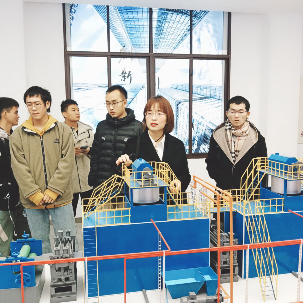 紧接着,同学们粗略了解了长沙矿冶研究院的发展历程,并见识到了物理清洗设备中的魁首——高压水射流清洗机的成套模型。