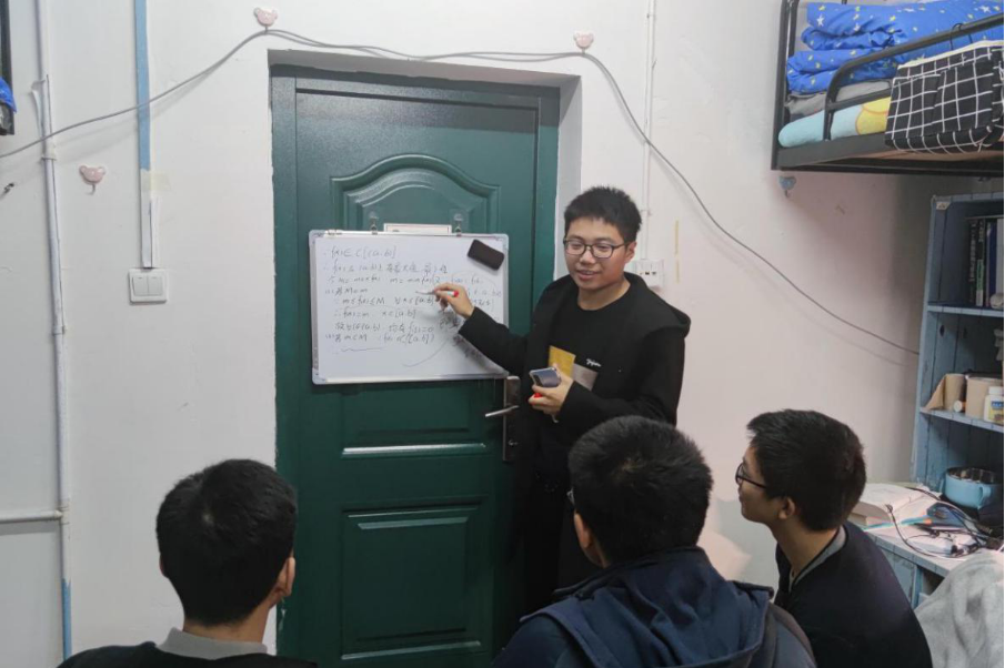 建立优秀班集体的第一步,是建设良好的学风。寝室是我们日常待得最多的地方,我们经常会在寝室讨论学习问题,分享学习经验。应学习之需,我们班寝室购买了白板用于学习交流,打开寝室大门,经常会看到同学们围在白板前激烈的讨论学习难题,各抒己见。并且,614作为学霸寝室,每到考前,他们寝室通常会人来人往,各个寝室的人来这儿找学霸取经。