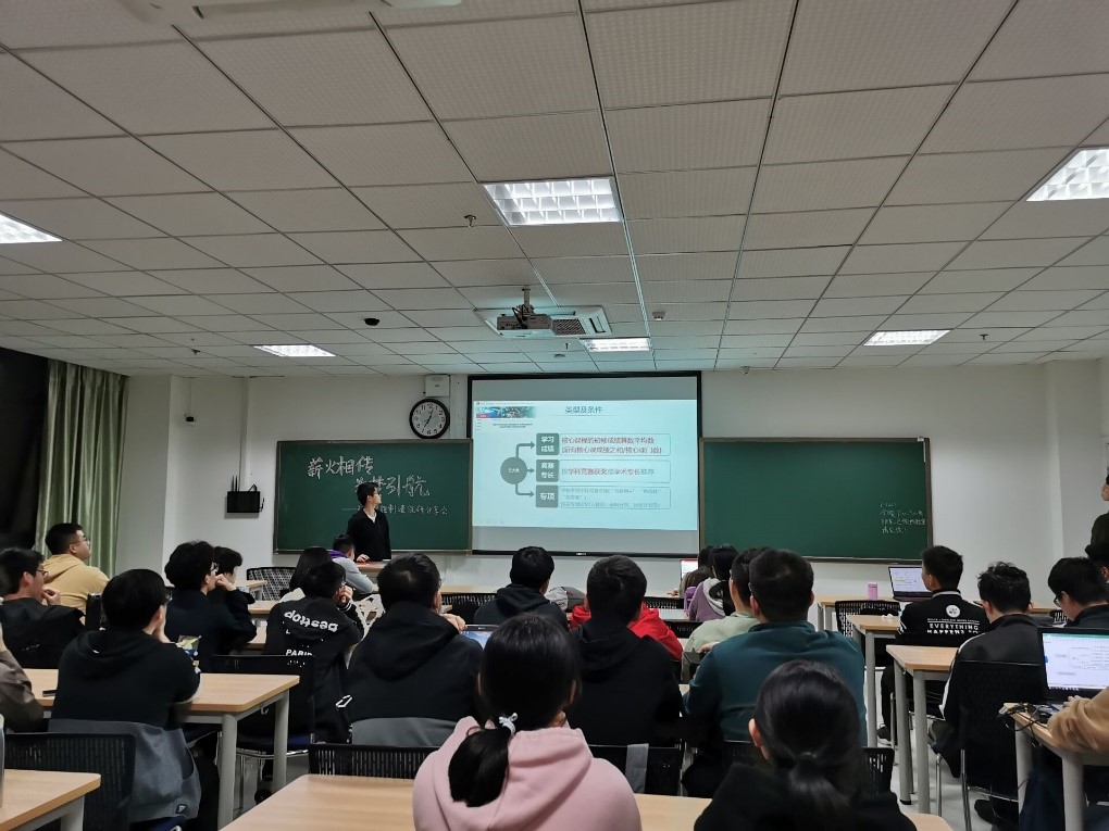 随后,学长又给出一些建议,比如我们可以提前准备相关的科研,以便保研面试时能和导师有较高的交流度,能较好地向导师展示自己的专业能力,这样成功的几率也会大大提高。另外,学长也透露了保研能够去往的学校所对应的大概成绩排名,供我们参考,这也给了我们很大动力。最后,学长告诉我们目光要长远,眼下事情做好的同时也要考虑未来,制定长远的规划。同学之间的关系不止是同学,也是竞争对手,但重要的是希望我们保持纯洁的友谊,共同进步。