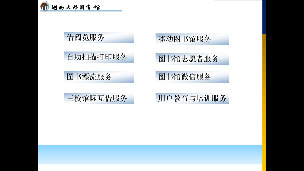 随后黄晓玲教授介绍了湖南大学丰富多彩的阅读推广活动,如:经典阅读课程建设、一校一书阅读活动以及其它主要以世界读书日、读者权益日、九月读书月等为中心的阅读推广活动。