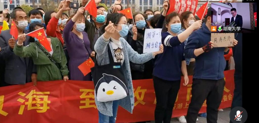 的老师随后为这几位杰出校友颁奖,感谢他们对全民抗疫作出的巨大贡献,也感谢他们对湖南大学的优良传统的传承与发扬。