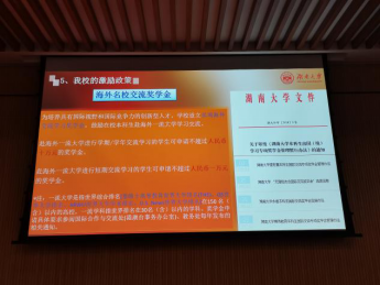 接着,刘蕾老师为同学们明确了海外交流项目的申请条件和流程。海外访学不仅是个人求学,同学们还要具有优秀的学习成绩,更应该具备良好的政治道德素养,为学校乃至国家树立良好形象。