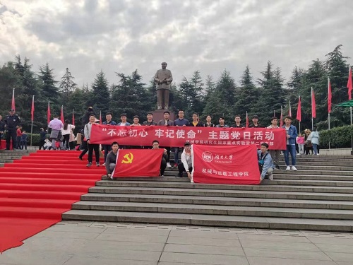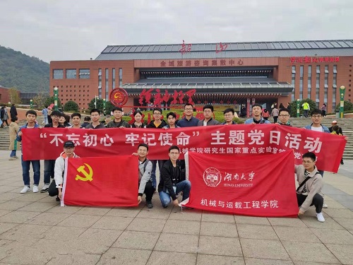 2019年11月16日,机械院研究生国家重点实验室第二党支部组织党支部全体党员前往韶山、花明楼红色教育基地,参观毛泽东、刘少奇伟人故里,开展“不忘初心,牢记使命”主题教育党日活动。
