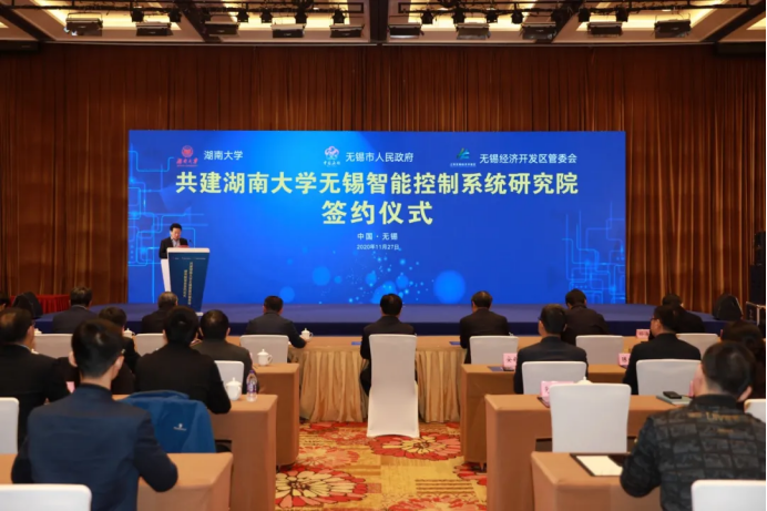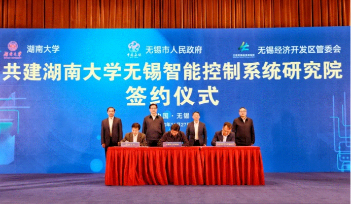 11月27日,湖南大学、无锡市人民政府、无锡经开区管委会合作共建湖南大学无锡智能控制研究院项目举行签约仪式。校长段献忠,中国工程院院士、澳门银河娱乐城官网