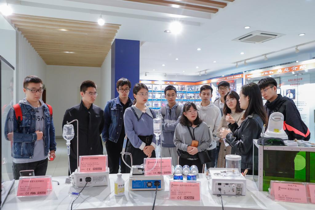 本科生、研究生代表组成的考察团在辅导员闫智琪、王欣的带领下,来到广西桂林啄木鸟医疗器械有限公司进行参观考察。上午9点,考察团来到位于桂林市高新信息产业园区内的啄木鸟公司,进行了为期一天的实地考察,考察团受到了公司的热情接待。