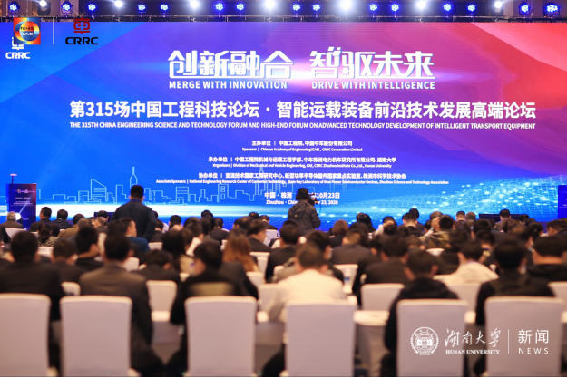 10月23日,由中国工程院和中国中车联合主办、湖南大学参与承办的“第315场中国工程科技论坛·智能运载装备前沿技术发展高端论坛”在湖南株洲举行。