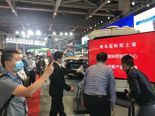 在院士专家创新成果展区,一位容光焕发、鸿儒硕学的学者正在为观展的领导、同行介绍他带来的展出成果——这位学者正是中国工程院副院长、湖南大学前校长钟志华院士。据钟院士介绍,现场展示的智能调度平台、自动驾驶平台和智慧车列项目均是湖南大学智能车辆团队的最新科研成果。钟院士在与青岛市李沧区张在厚区长的交谈中指出,智慧车列交通系统是宏观智能交通发展与微观运载工具技术研究趋势相融合的中观层面新型城市交通生态系统,能够将高等级智能化运载工具与ICT基础设施、道路基础设置、移动出行服务有效融合,实现出行供给与交通出行的高效连结、实时匹配。据钟志华院士介绍,“智能车列交通系统”采用5座、15座、23座等不同座位数的新能源车型,采用无线通讯、传感器探测、高精度定位、智能影像识别等先进技术手段,实现对人、车、路的信息全面感知以及车与车之间的智能协同和配合,从而达到缓解道路拥挤、实现城市交通高效安全通行的目标。