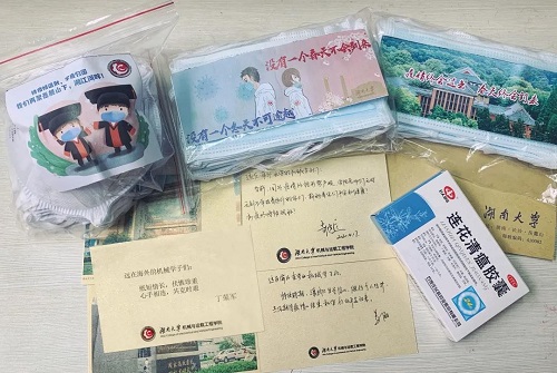 与研究生会共同筹备的防疫爱心包,正在漂洋过海的送达湖大海外学子的手中。每个包裹中包含10个N95口罩,20个医用防护口罩,1盒连花清瘟胶囊,还有来自澳门银河