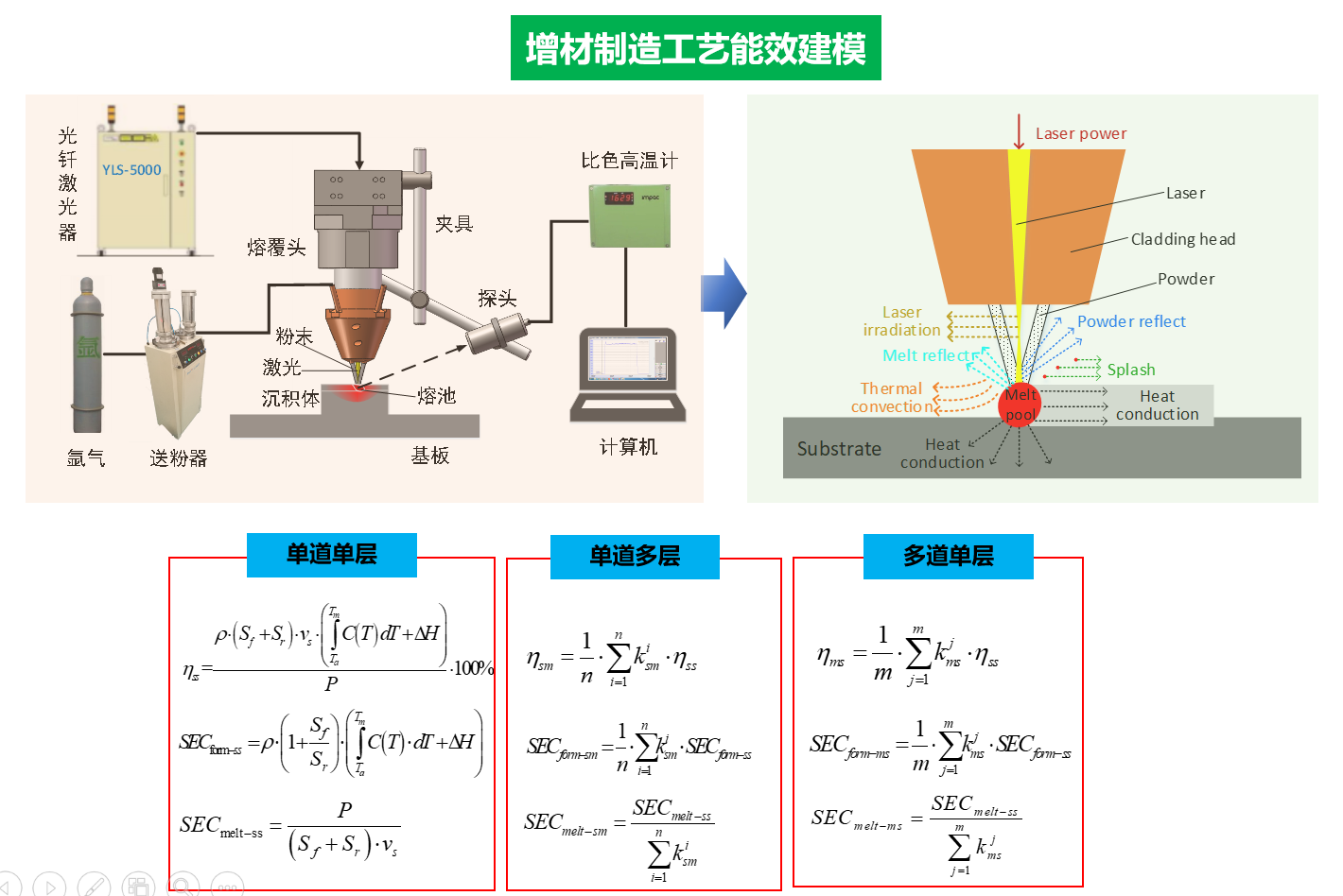 通过面向工艺性能的增减材激光复合制造能耗特征分析,建立金属增减材协同的激光复合制造工艺过程能耗模型;从光-力-热多维度揭示增减材激光复合制造能耗特征与工艺性能间的耦合协同机制,致力于寻找金属增减材激光复合制造工艺能效提升和绿色制造的新方法。